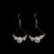 A stunning central glittery bead accompanied by delicate pearls, these earrings are framed in a stylish gold geometric design.