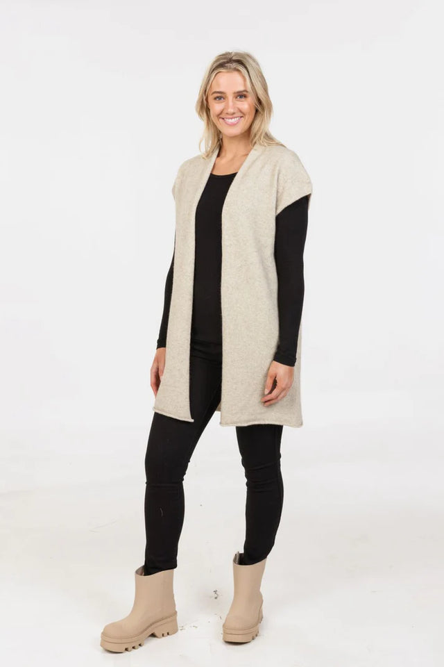 Knitted in a luxury blend of possum and merino, this open front longline vest is versatile, and a fashion essential in any wardrobe.